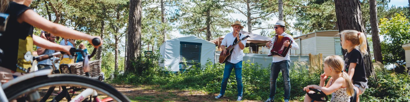 In jeder Saison werden an diesem besonderen Ort auf dem Campingplatz die schönsten Veranstaltungen organisiert. Das Theater ist über einen Holzsteg mit dem lebendigen Begegnungsplatz verbunden. Dort finden ebenfalls viele Aktivitäten und Veranstaltungen statt.