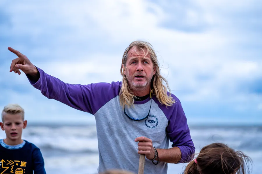 Sie wissen alles über den Campingplatz und die Natur der Umgebung. Erleben Sie ein Abenteuer mit unseren Naturhelden und entdecken Sie die Geheimnisse der Küste. Gjalt nimmt Sie mit an den Strand, wo sie gemeinsam fischen („korren“)